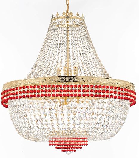 Amazon Co Jp ネイルサロン フレンチエンパイア クリスタルシャンデリア 照明ドレッシング ルビーレッドクリスタルボール付き ダイニングルームに最適 高さ36インチ 幅36インチ 25ライト Diy 工具 ガーデン